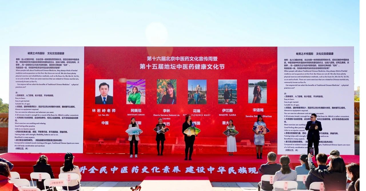 的花瑞等5名同学分别饰演金、木、水、火、土等角色,在校医院林岩峙老师的带领下以“岐黄问答”的形式现场展示了我校国际学生对中医药知识的理解,生动阐释了中医药的治疗原理和功效,彰显了我校在中医药国际传播方面的特色优势和丰硕成果。
