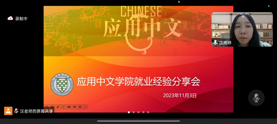 最后,辅导员汪雨婷老师结合具体情况对本次经验分享会总结发言,主要提出了三点注意事项:第一,在选择职业时要注意各个城市的就业政策和自身的实际情况,同时保持开放的心态,不断尝试各种可能性;第二,充分利用应届毕业生身份争取更多的就业机会;第三,要合理安排毕业论文进度以确保顺利毕业,提前为求职做好准备。