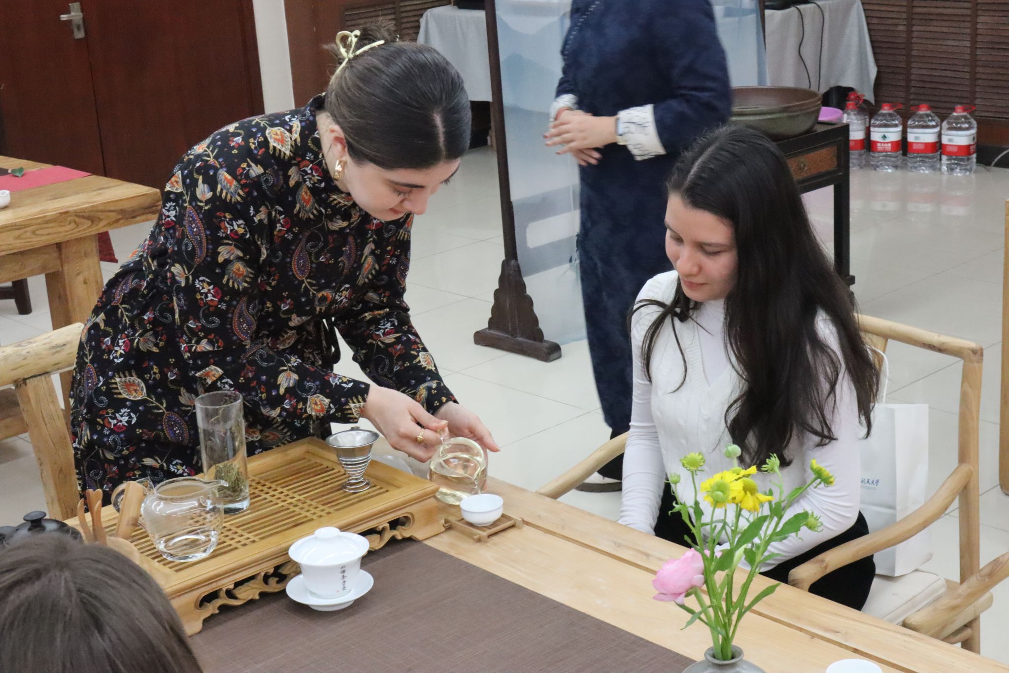 为北京航空航天大学国际学院的21名师生在“北语茶学堂”举办了中华茶文化体验活动。21名师生中,有来自俄罗斯、吉尔吉斯斯坦、阿塞拜疆、乌克兰、日本、韩国、越南、法国、马来西亚、萨尔瓦多、尼加拉瓜等11个国家的14名国际学生。
