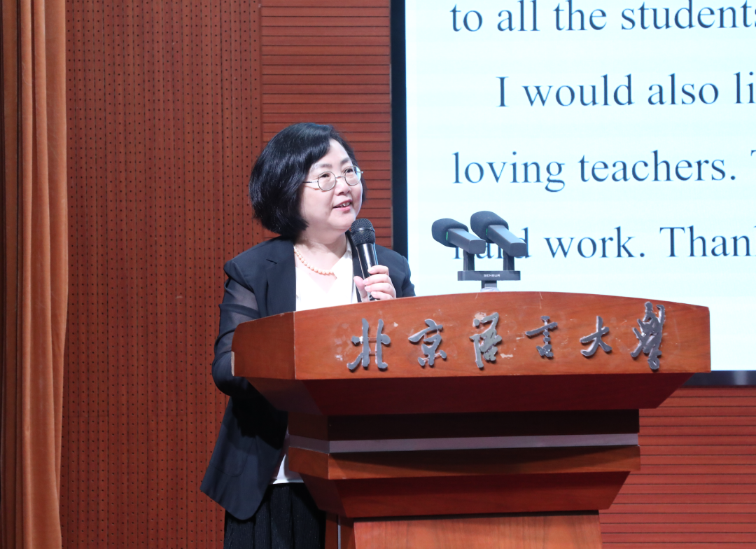 在结业典礼上,苏英霞院长首先为本学期做了总结发言,鼓励留学生们将所学知识运用到实际生活中,为促进中外文化交流和推动世界和平与发展贡献力量,给同学们送上了美好的祝福。
