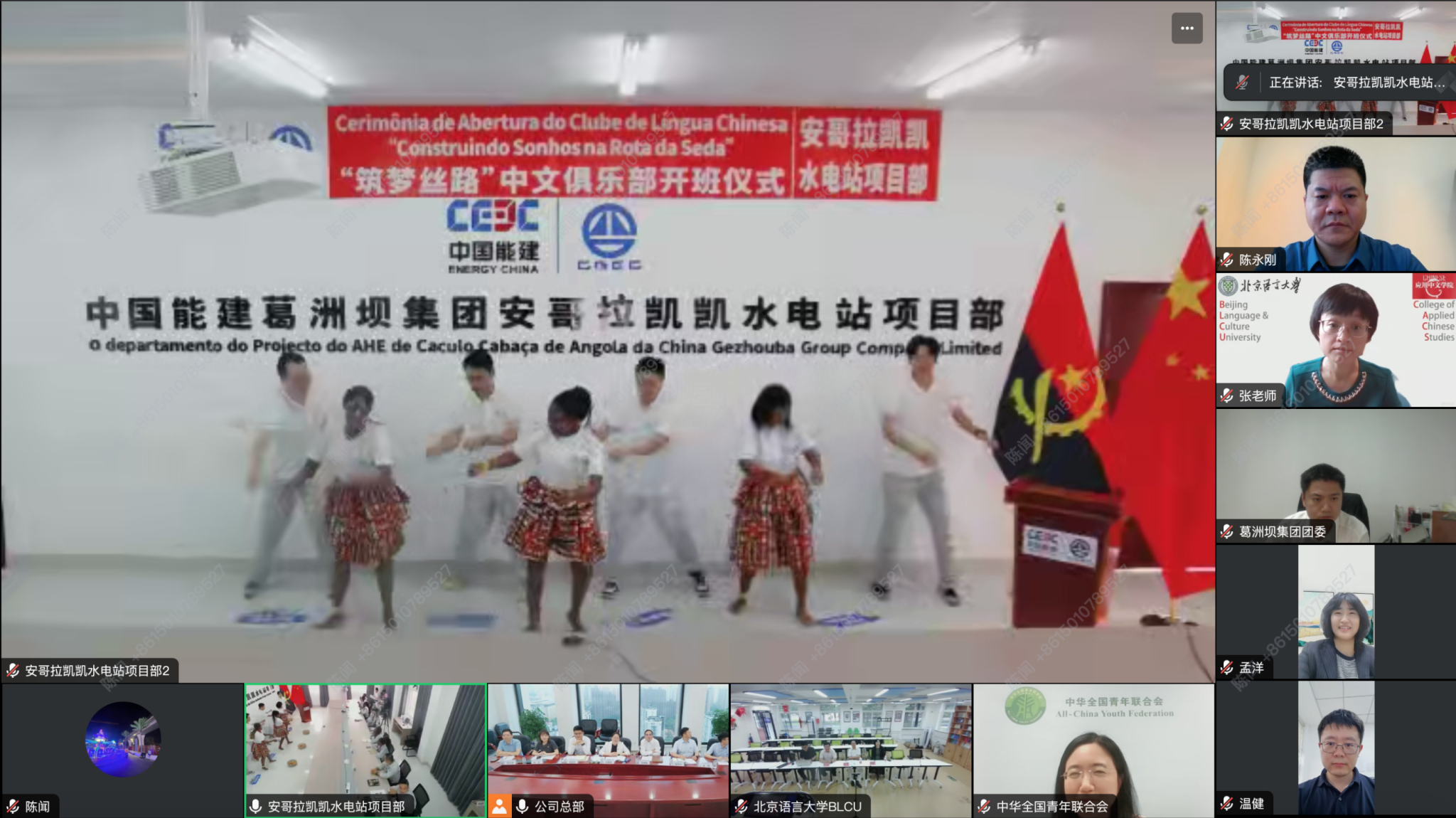 与中国能源建设集团合作的“筑梦丝路”中文俱乐部举行线上开班仪式,我校党委副书记魏晖应邀出席仪式并讲话。全国青联副秘书长刘凯,中国能建集团相关领导,中国能建安哥拉凯凯水电站项目中文俱乐部学员,以及av在线看