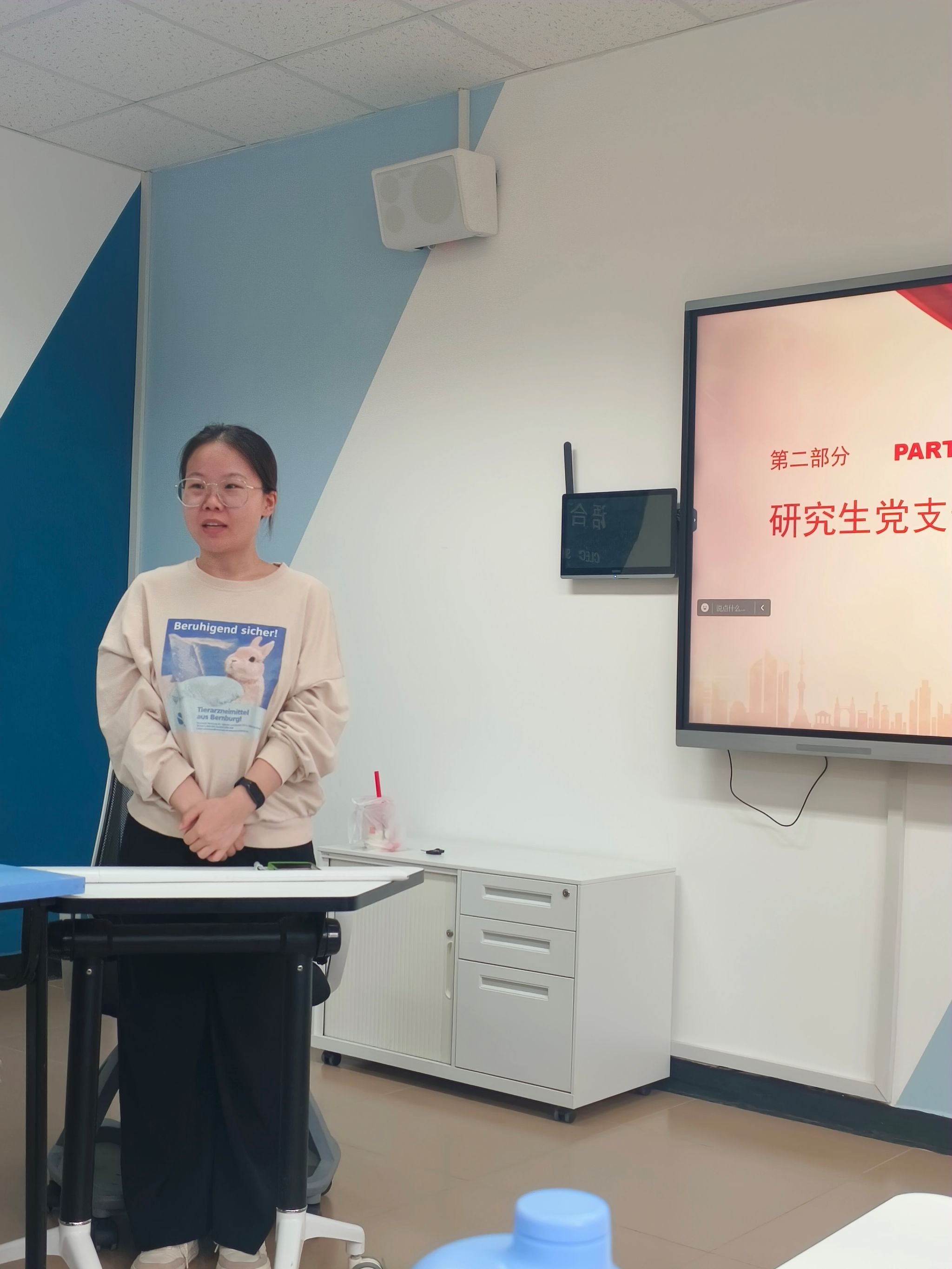 第二环节是针对2024级新生党员的欢迎仪式。七位新加入支部的成员逐一发言,分享了他们的个人背景、入党经历及初心,并对未来在支部的生活表达了期待。老党员们对新成员的到来给予了热烈欢迎,并举行了党徽佩戴仪式。