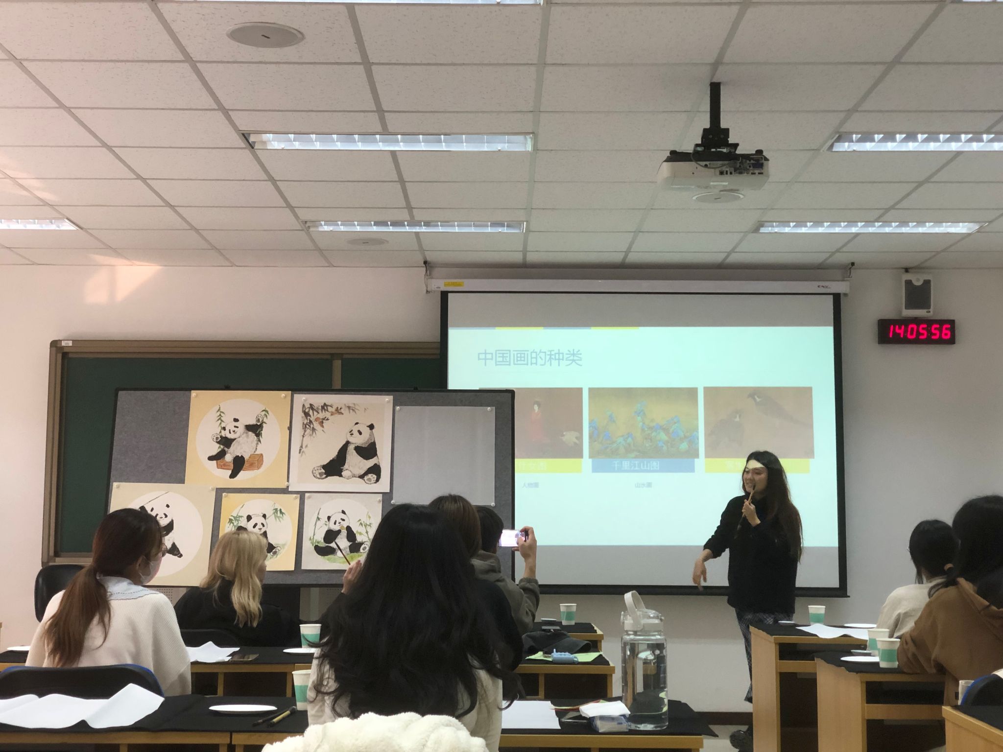 在这次活动中,我与国画老师紧密合作,共同向来自世界各地的留学生们展示了中国传统艺术——国画的独特魅力。我们用笔墨纸砚这些传统工具,引导学生们体验国画的创作过程,感受中国传统文化的深厚底蕴。
