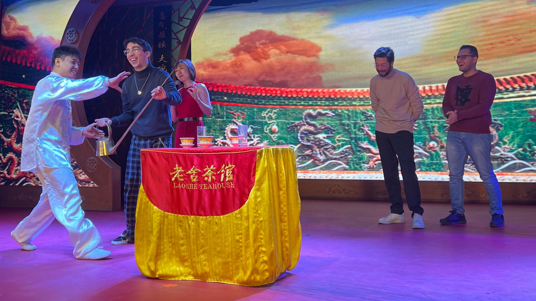 组织近300名国际学生前往老舍茶馆进行文化体验活动。在寒冷的北京冬季,同学们尽情享受了一场热情洋溢的文化盛宴。