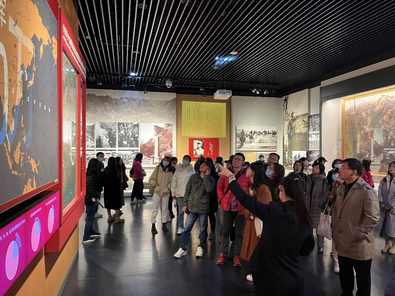 中国抗日战争纪念馆内,一幅幅照片、一件件文物和一处处复原景观真实再现了中国人民艰苦卓绝的抗战之路和抗战到底、救亡图存的不屈精神。杨靖宇、赵一曼、佟麟阁、赵登禹、张自忠、左权……,一个个熟悉而又崇高的英雄人物及其故事令人震撼。党员们为杨靖宇将军壮烈殉国时胃里竟无一粒粮食而悲愤,为抗日英雄赵一曼写给孩子的遗书而动容,为八路军副参谋长左权牺牲时年仅37岁而痛惜,为美国飞虎队和中国人民的并肩作战而感动……。全体党员缅怀死难同胞,致敬英勇捐躯的先烈,铭记中华民族的不屈抗争与坚强意志。