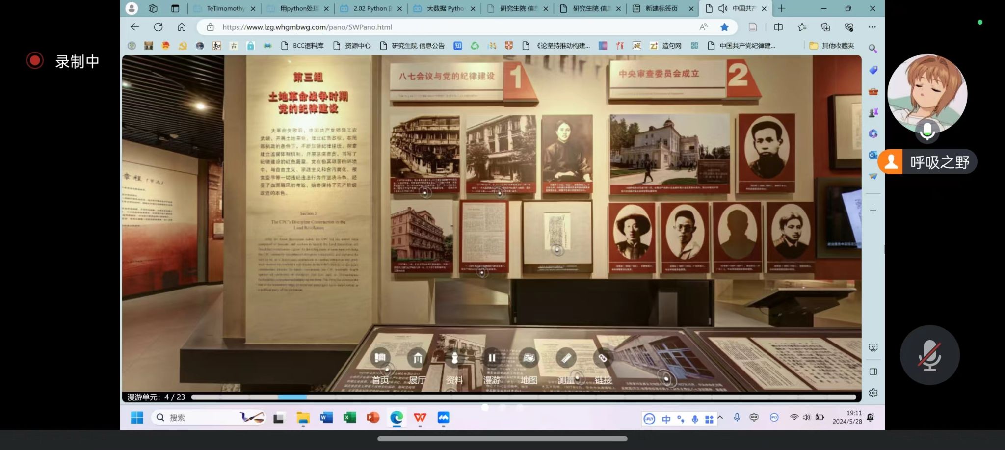 通过线上平台,与会者参观了中国共产党纪律建设历史陈列馆和中共一大的数字展馆。展览以“创立与探索”、“推进与曲折”、“恢复与发展”、“新时代新征程”四大部分,全面展现了党的纪律建设的光辉历程。展览不仅系统梳理了中国共产党纪律建设的历史脉络,还客观真实地展现了不同历史时期的纪律建设理念、战略方针及主要成果,为各位党员老师和学生们提供了一次深刻的精神洗礼。